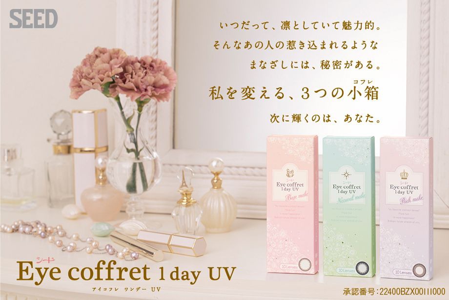 その日の気分やシチュエーションに合わせて瞳にもオシャレをプラス。オトナの女性がごく普通にオシャレをするように、あなたにステキをプラスするコンタクトがあったらいかがですか?「シード アイコフレ ワンデー UV」は、瞳の輪郭を際立たせる、超薄型UVカット機能付きサークルレンズ。シーン別に「Base Make」・「Natural Make」・「Rich Make」という、3ラインアップをご用意し、その日の気分やファッションに合わせた瞳の演出を提案します。嬉しいUVカット機能付き☆☆イメージモデルは女優の北川景子さん☆