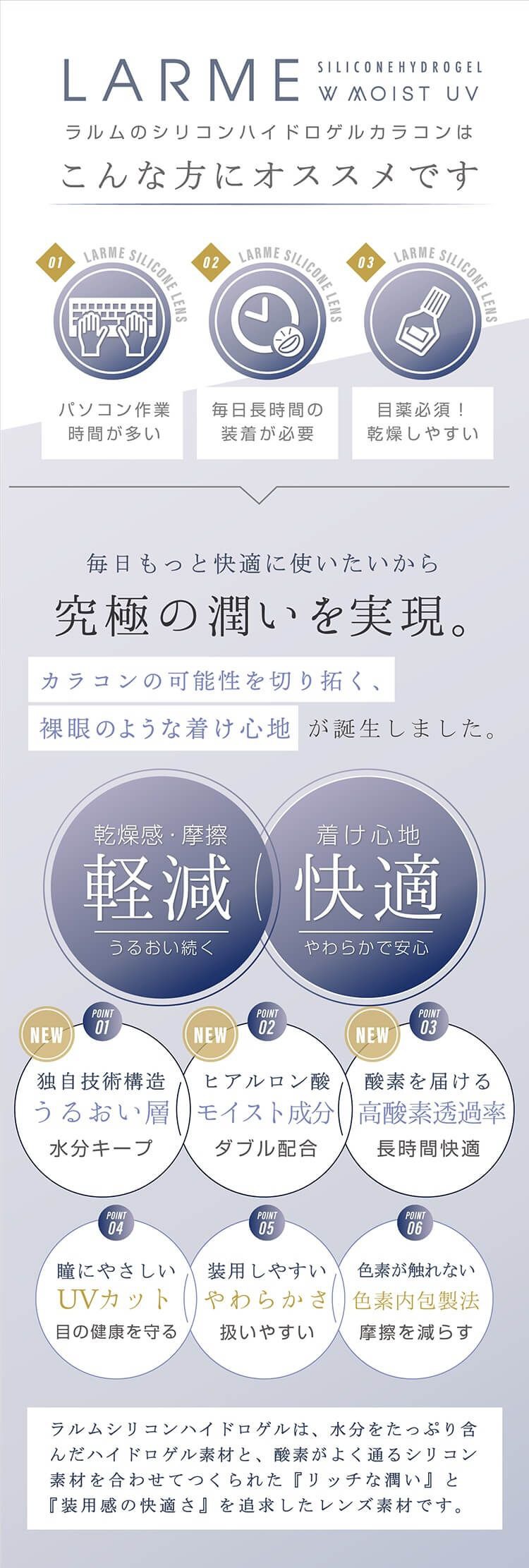 ラルム シリコンハイドロゲル WモイストUV(LARME SILICONE HYDROGEL W MOIST UV)|度あり・度なしカラコン ワンデー|14.0mm/14.5mm|池田エライザ