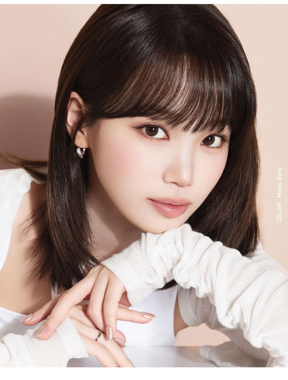 ワンデー人気カラーがマンスリーにも仲間入り!大きすぎず小さすぎない、大人美的レンズ直径でナチュラルだけど印象が変わる。UVカット&うるおい成分追加!■カラー■ 《メルティモア》【NEW】メルティベアが進化して登場!! 生まれつきの大き目瞳が叶うナチュ盛り裸眼風レンズ。《ベイビーバニラ》【NEW】小さめブラウンと細フチでくりっと可愛くあどけない瞳に。《シアーセーブル》全体に細かく入るぼかしフチと明るめベージュで瞳に立体感を与え、こっそり大きく綺麗に魅せる。《メルティベア》柔らかいナチュラルブラウンが瞳にすっと溶け込み、究極の透明感を演出。《ラスタージェム》ニュアンスカラーが裸眼にじゅわっと溶け込み、ふんわり瞳をトーンアップ。《ハグミー》ふんわり太フチとちゅるんピンクブラウンで大人甘い瞳を演出。《ステイミー》透明感を与えるニュアンスカラーと太めふんわりフチでうるちゅるな瞳に。■サークル■ 《シャイブラウン》【NEW】ナチュ盛れブラウン&細フチでバレずにかわいい瞳に。《ムースブラウン》ふんわりフチが瞳に溶け込む大本命のふわっと裸眼風レンズ。《ブラウン》極小ドットのブラウンで瞳に自然に馴染み優しい目元を演出。《ブラック》柔らかいブラックで自然な存在感あるクリっとした印象に。モデル:KIM CHAEWON