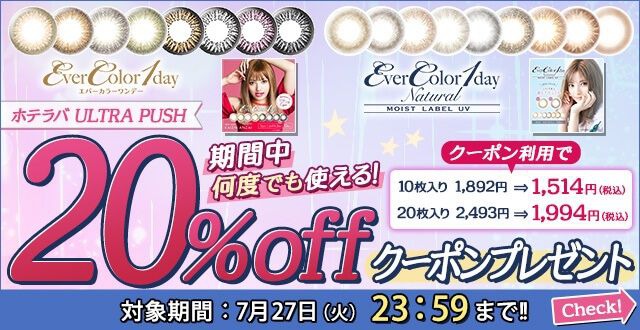 【ホテラバULTRA PUSH】期間限定!!エバーカラーワンデー&ナチュラルモイストレーベルUV20%OFFクーポンプレゼント♪