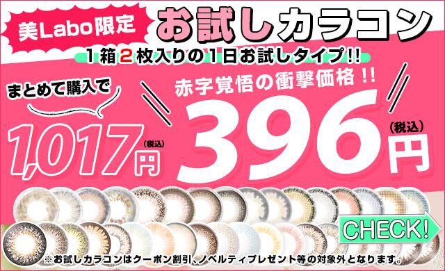 1箱2枚入りがたったの396円!!ワンデーカラコンのお試しタイプ!!